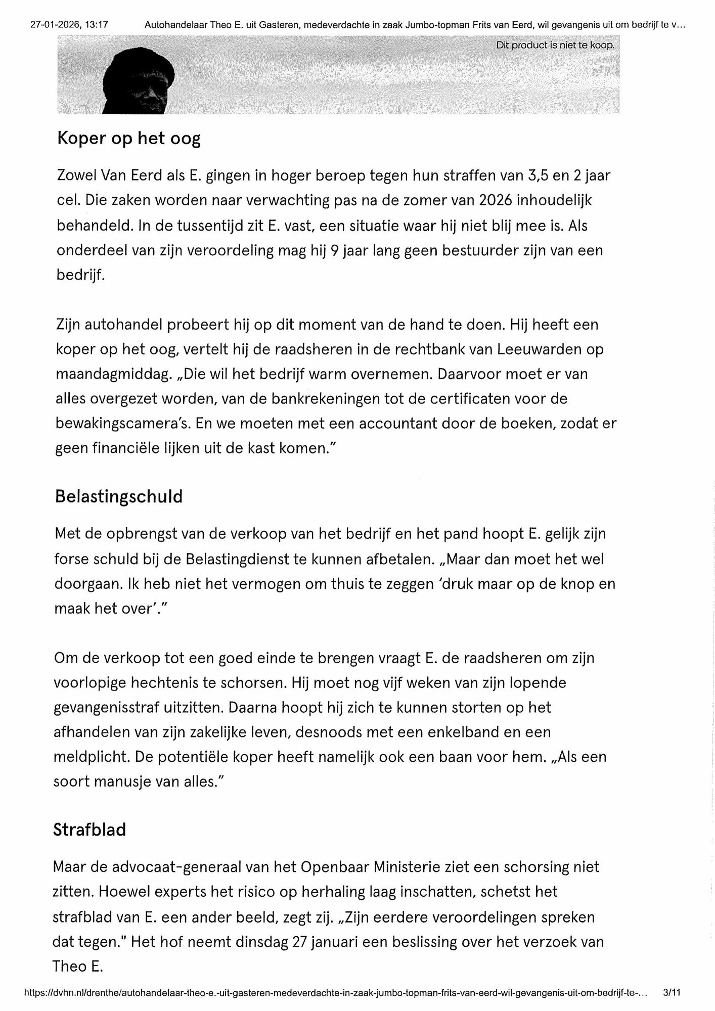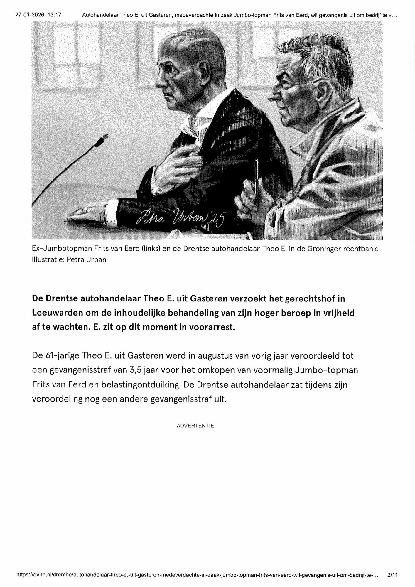 Theo E., de verdachte in de zogeheten Jumbo-zaak, is op verzoek van raadsvrouwe Stephanie Heukers onder voorwaarden vrijgelaten. Cliënt is in eerste aanleg door de rechtbank veroordeeld wegens omkoping van de toenmalige CEO van Jumbo, valsheid in geschrift en enkele fiscale delicten. Aan cliënt is een gevangenisstraf opgelegd van 42 maanden.